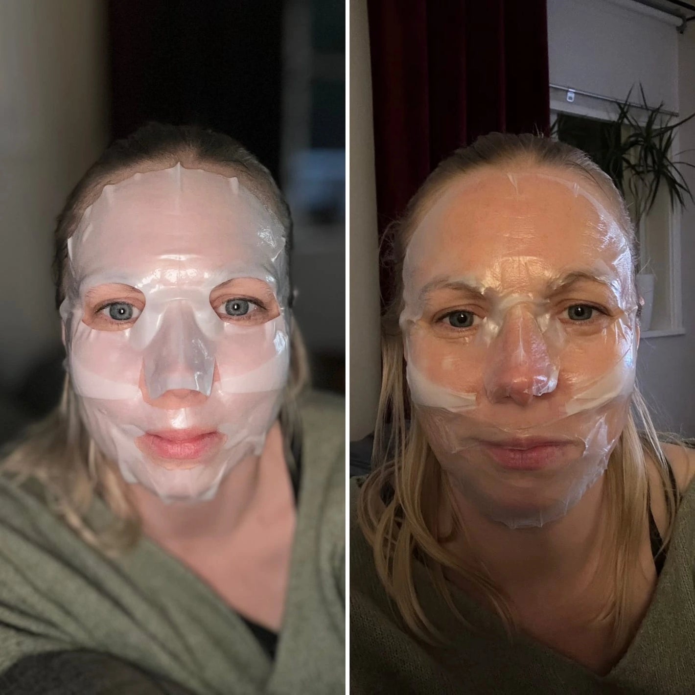 Lorsque le masque devient transparent, vous savez que votre peau a "absorbé" tout le traitement. Retirez le et ressentez la différence : une peau plus douce, plus rebondie et plus hydratée qu'elle ne l'a été depuis longtemps.